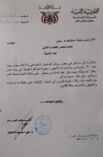 وطلب النائب العام تكليف أحد وكلاء النيابة للنزول إلى الميناء؛ للوقوف على حقيقة ما تم تداوله عبر وسائل الإعلام وشبكات التواصل الاجتماعي، والتحقيق والتصرف وفقا للقانون....