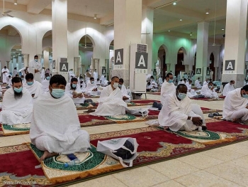 توافد حجاج بيت الله الحرام إلى مسجد نمرة في مشعر عرفات، الخميس، لأداء صلاتي الظهر والعصر جمعا وقصرا، وسط إجراءات صحية مشددة....