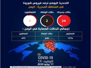 الصحة تسجل 24 إصابة جديدة بكورونا بالمناطق المحررة وحالات التعافي تتفوق على الوفاة...