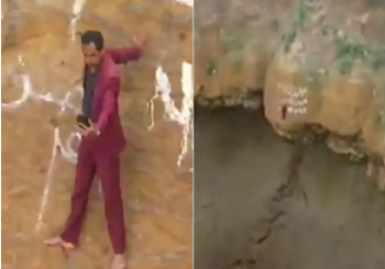 وهو يقوم بمغامرة النزول من على أطراف فوهة بركان بمحافظة ...