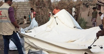 مساكنها المصنوعة من القش وسعف النخيل خلال استهدافها التجمعات السكنية والمزارع في جنوب الحديدة خلال الأيام الأخيرة....