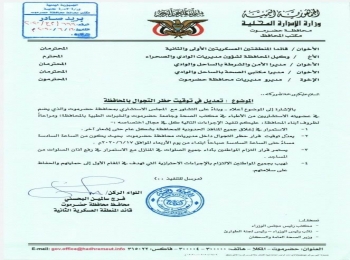محافظ حضرموت يصدر تعميما باجراء تعديل في توقيت الحظر بالمحافظة...