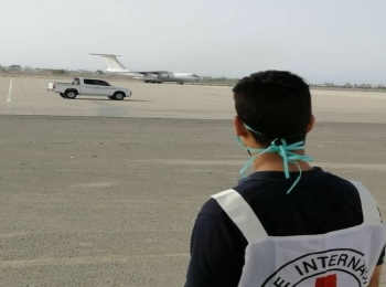وصول شحنة طبية للصليب الاحمر الى مطار عدن...