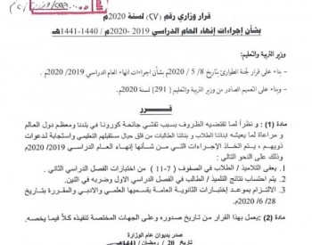 نتيجة لانتشار فيروس كورونا في العديد من المحافظات التابعة للحكومة الشرعية اقرت وزارة التربية والتعليم انهاء العام الدراسي ...
