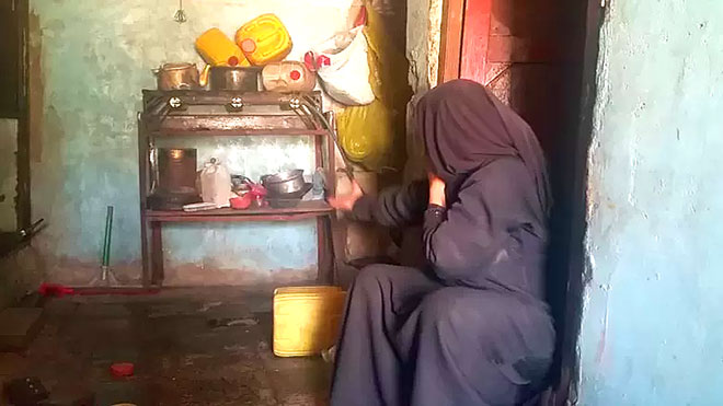 تقطن مريم مع أطفالها في منزل صغير بحي السنينة غرب مدينة صنعاء، بعد أن فرت من أحد الأحياء الواقعة على خط التماس بين عناصر الميليشيات الحوثية وجنود الجيش الوطني بمدينة الحديدة.
