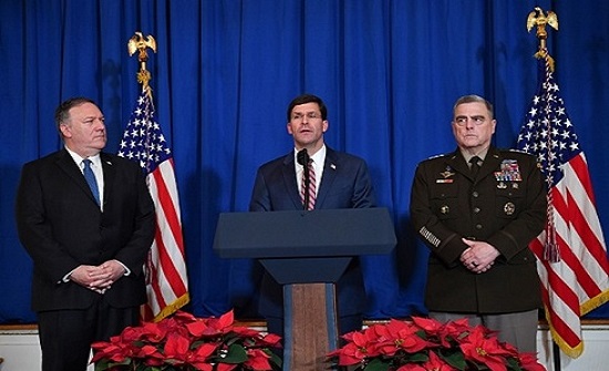 وقال إسبر إنه توجه مع وزير الخارجية مايك بومبيو إلى فلوريدا، حيث يمضي الرئيس دونالد ترامب عطلة عيد الميلاد، لإطلاعه على آخر الأحداث في الشرق الأوسط.