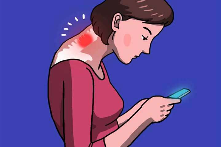 كثرة النظر للهاتف مع انحناء الرقبة للأمام يزيد الضغط على العمود الفقري بالتدريج، ومع مرور الوقت يزيد الضغط على الرقبة ل 5 أضعاف مما يسبب آلام بالرقبة ويصيبك بحالة مرضية تتمثل في تشوه مظهر الرقبة للانحناء الذي أصابها، لذلك امسك هاتفك في مستوى نظرك واجعل رقبتك مستقيمة أثناء الاستخدام.