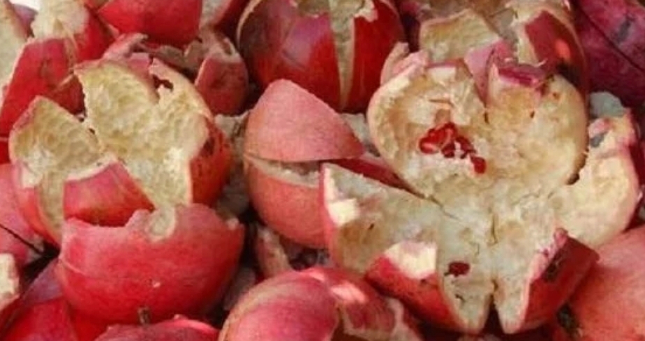 اصنع مسحوقًا بقشر الرمان المجفف بالشمس وخزنه في وعاء محكم الغلق.