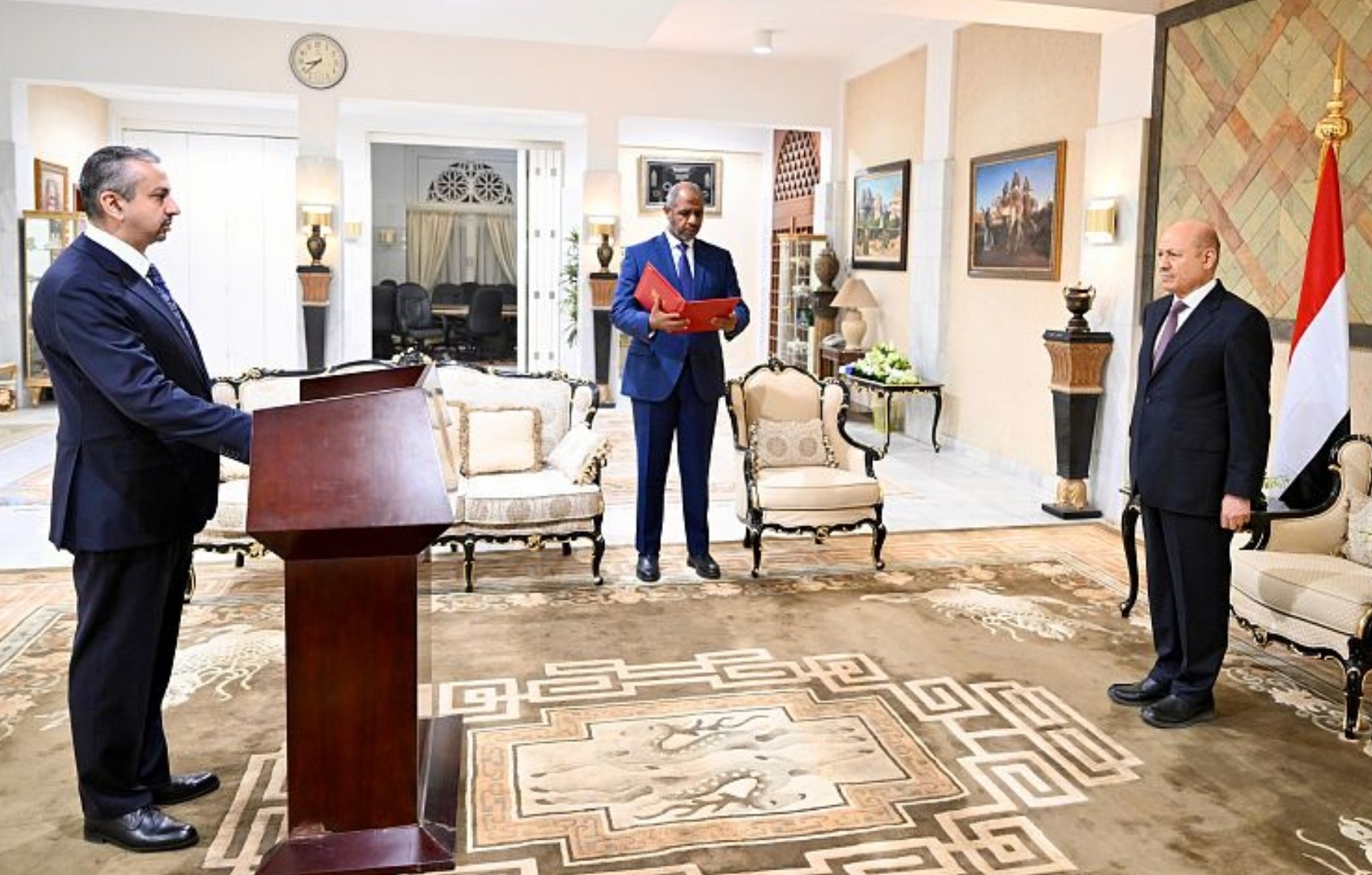 ادى اليمين الدستورية امام فخامة الرئيس الدكتور رشاد محمد العليمي، رئيس مجلس القيادة الرئاسي، بمقر سفارة الجمهورية اليمنية في الرياض، لؤي يحيى عبدالرحمن الارياني، وذلك بمناسبة تعيينه سفيرا فوق العادة ومفوضا لدى جمهورية المانيا الاتحادية.